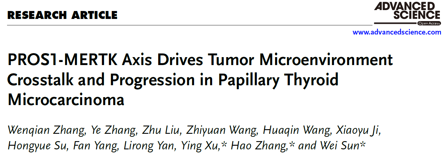 文献标题:PROS1‐MERTK Axis Drives Tumor Microenvironment Crosstalk and Progression in Papillary Thyroid Microcarcinoma