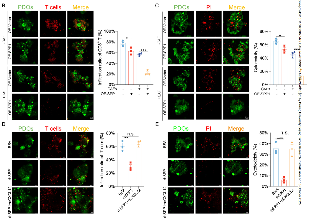 体外共培养实验显示,CXCL12 可显著减少 CD8+T 细胞向 PDO(患者来源类器官)的浸润,降低 T 细胞细胞毒性。