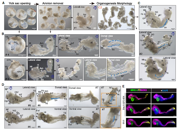 3. 胚胎模型构建:优化培养条件,让 iEFCs 自组织形成胚胎模型,全程复现从细胞命运特化到器官发生的完整过程。