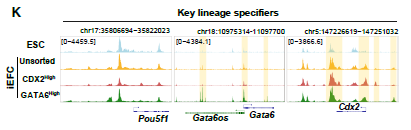 chromatin accessibility 分析显示,iEFCs 打开了桑椹胚阶段关键基因的染色质区域,关闭了多能干细胞特异性基因。